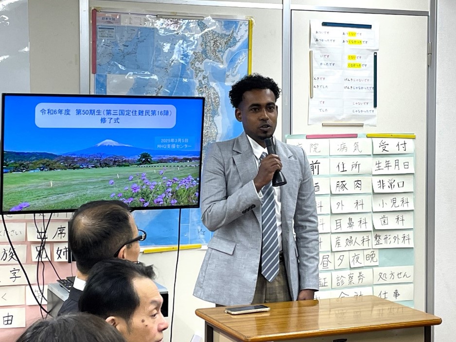2025年3月5日(水)、昨年9月に日本に入国し、RHQ支援センターに入所した第三国定住難民50期第16陣(後期半年コース)の修了式を実施しました。